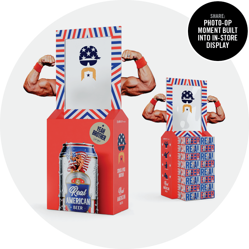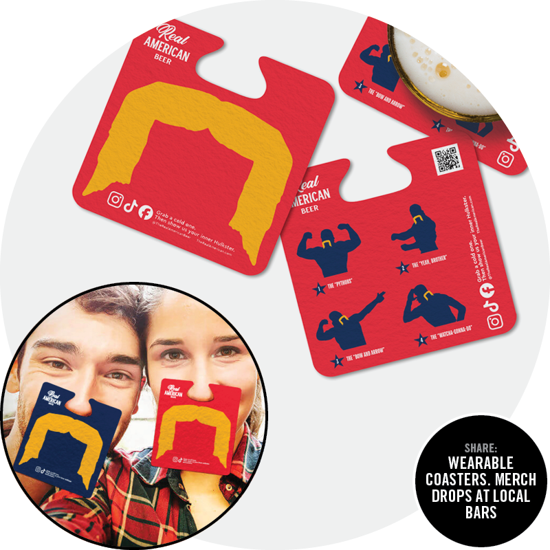 A BRAND LAUNCH CAMPAIGN FOR HULK HOGAN’S NEW REAL AMERICAN BEER. INTERACTIVE BRAND TOUCHPOINTS TO ANNOUNCE AND DRIVE SOCIAL INTERACTION.