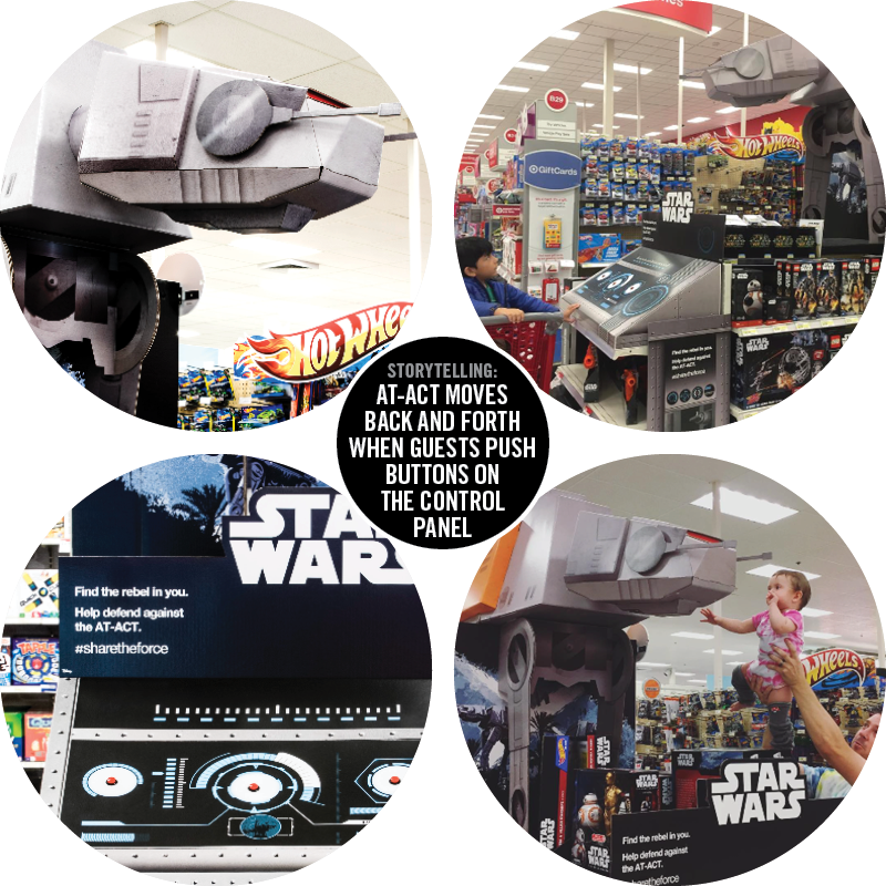 STAR WARS BROUGHT IT’S FLEET TO THE AISLES OF TARGET WITH EXCLUSIVE MERCHANDISE. WE PUT THE GUESTS IN THE MIDDLE OF THE BATTLE, INSIDE THE COCKPIT, & AT THE CONTROL PANEL OF THE ENTIRE EXPERIENCE.